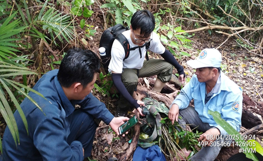 Mang theo những câu hỏi đó, nhóm nghiên cứu của CTNC đã tiến hành khảo sát thực địa trong thời gian từ ngày 31 tháng 3 đến ngày 10 tháng 4 năm 2025, đây là một chương mới đầy thử thách và sự kỳ vọng. Những bước chân không mệt mỏi của các chuyên gia đã lặn lội hàng chục cây số mỗi ngày, băng qua những cánh rừng rậm rạp, chinh phục địa hình núi non hiểm trở vốn là đặc trưng của những cánh rừng này. Họ không chỉ kiên trì tìm kiếm từng dấu vết nhỏ bé như phân, dấu vết ăn, hay lắng nghe những tiếng hú từ xa xăm vọng lại, mà còn dành thời gian để thực hiện các cuộc phỏng vấn sâu với người dân, cán bộ địa phương nhằm tìm ra những quẩn thể mới và tìm hiểu về những mối đe dọa đang rình rập sự tồn vong của quần thể.